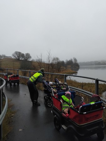 Vi går på tur for å utforske nærmiljøet.
