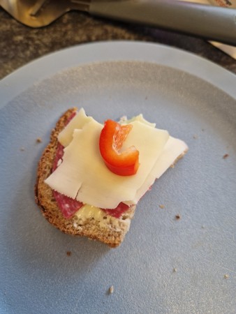 PÅLEGG - Vi prøver å ha tilbud om mange, ulike sorter pålegg slik at barna blir vant til å smake på forskjellig mat. Vi har som regel hvit og brun ost, flere typer smøreost, kaviar, makrell i tomat, leverpostei, salami, kalkunpølse mm. Minst en dag i uka får barna tilbud om kokt egg. I tillegg serverer vi noe grønt til brødmåltidene som f.eks. paprika og agurk.