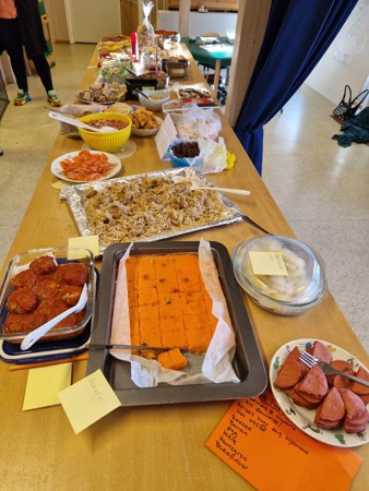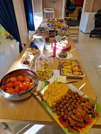 Selve dagen markerer vi ved å lage et stort bord med mat fra ulike land barna i barnehagen kommer fra. Det er veldig populært for barna å velge seg mat og smake på ulike retter. Vi er veldig heldige som har så mange flinke foreldre som lager så mange ulike matretter til oss denne dagen!